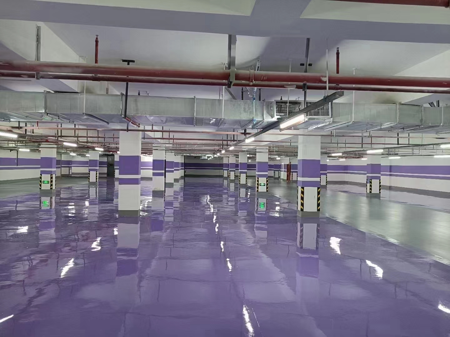 停车场地坪特点:中佳地坪给大家强烈推荐水性环氧地坪漆作为停车场防滑地坪漆。